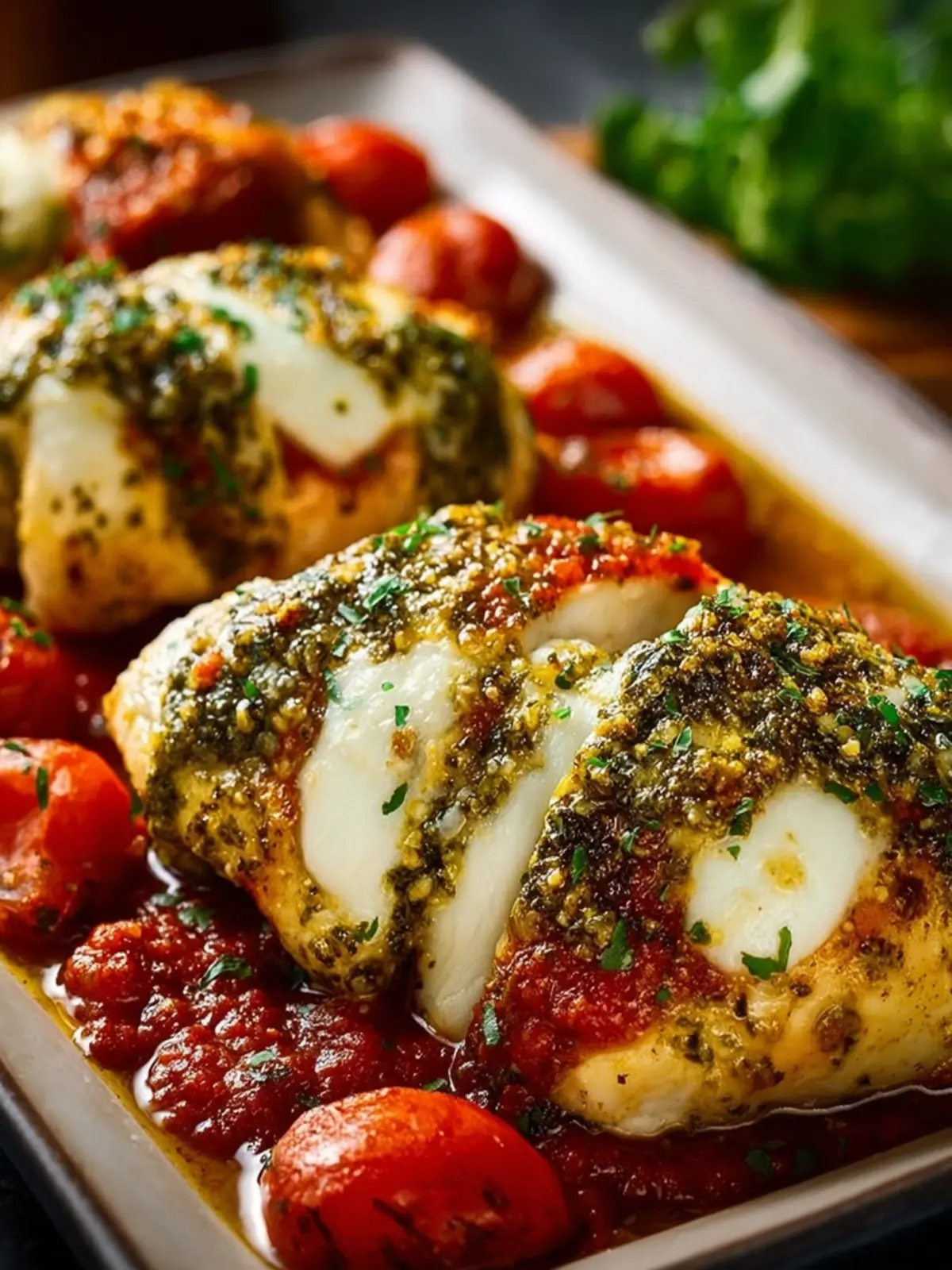 One of the best parts about this recipe is how effortlessly elegant it is. With just a handful of ingredients—chicken, pesto, mozzarella, and cherry tomatoes—you can whip up a dish that looks like it belongs in a gourmet restaurant. It’s perfect for impressing friends at a dinner party or simply enjoying a cozy night in.