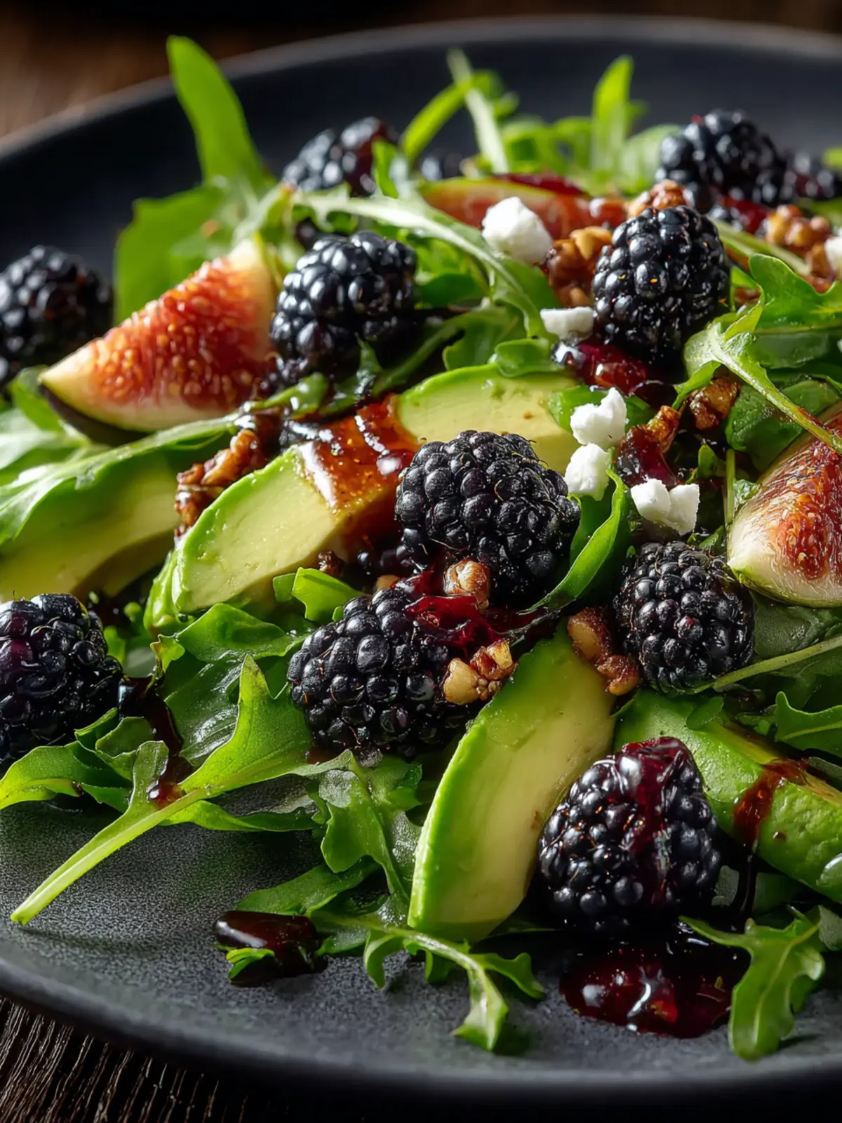 This salad isn’t just pretty to look at—it’s packed with nutritional goodness. Blackberries are a powerhouse of antioxidants, while avocado delivers heart-healthy fats. Add in the crisp arugula, and you’ve got a salad that’s as nourishing as it is tasty. Perfect for a quick lunch, a light dinner, or a picnic treat, this salad fits seamlessly into a busy lifestyle.