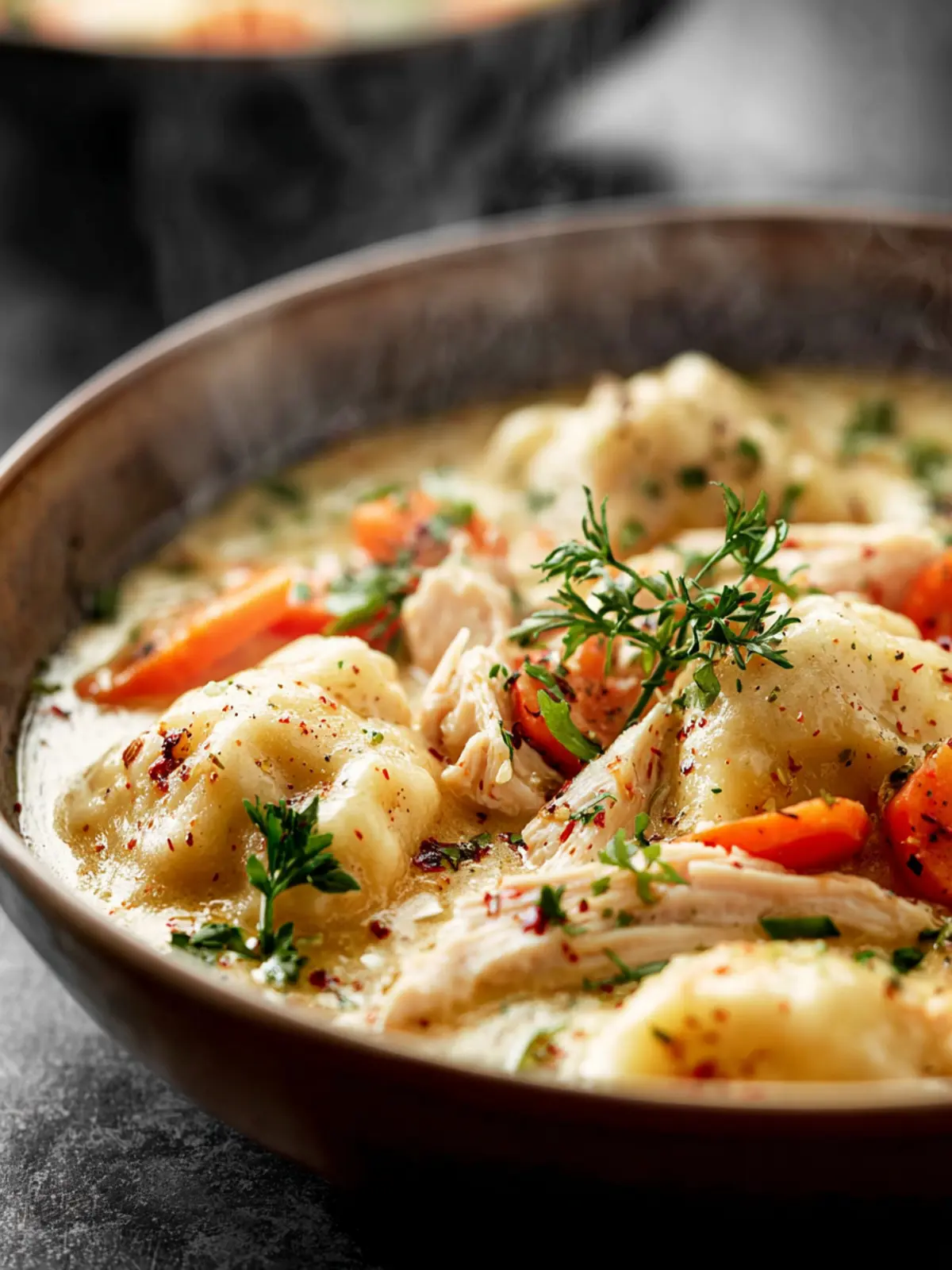A comforting Chicken and Dumplings recipe that is perfect for a cozy night in.