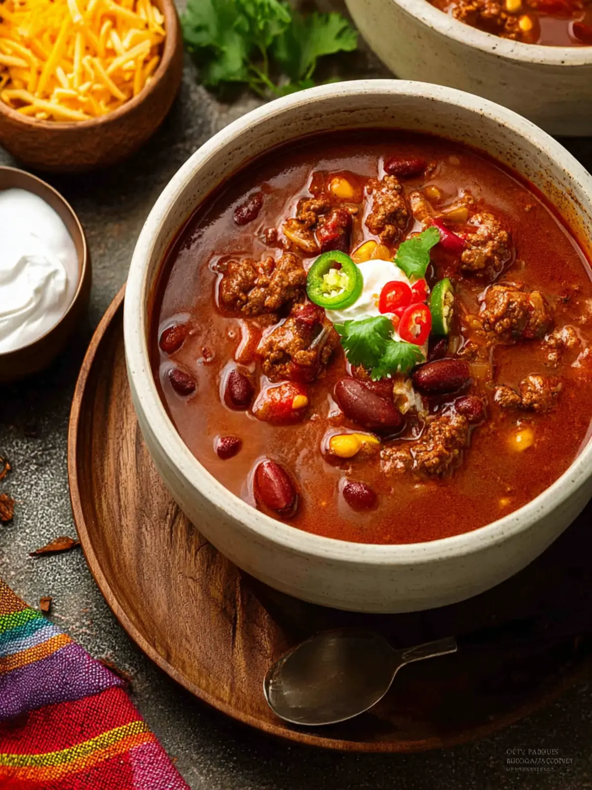 Serve your Chili Con Carne with a variety of toppings—shredded cheese, sour cream, and fresh cilantro—to create layers of flavor and texture that will impress your guests. Your chili will not just be a dish; it will be an experience!