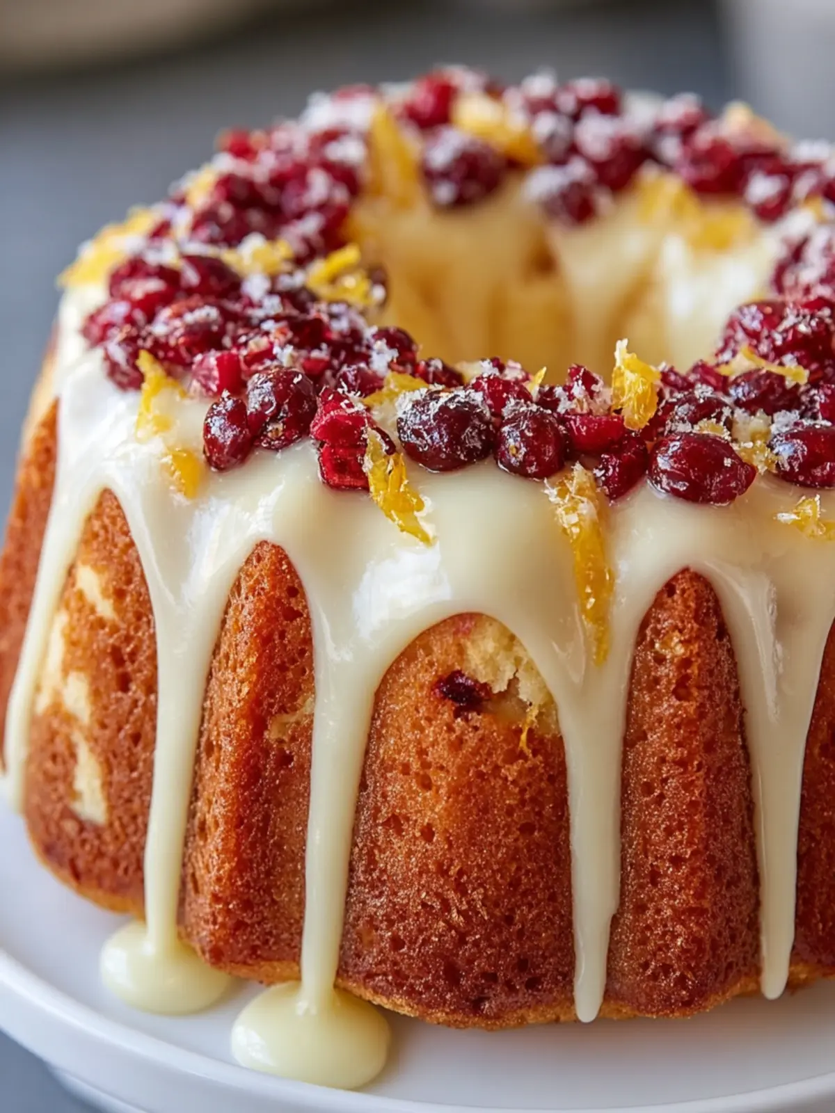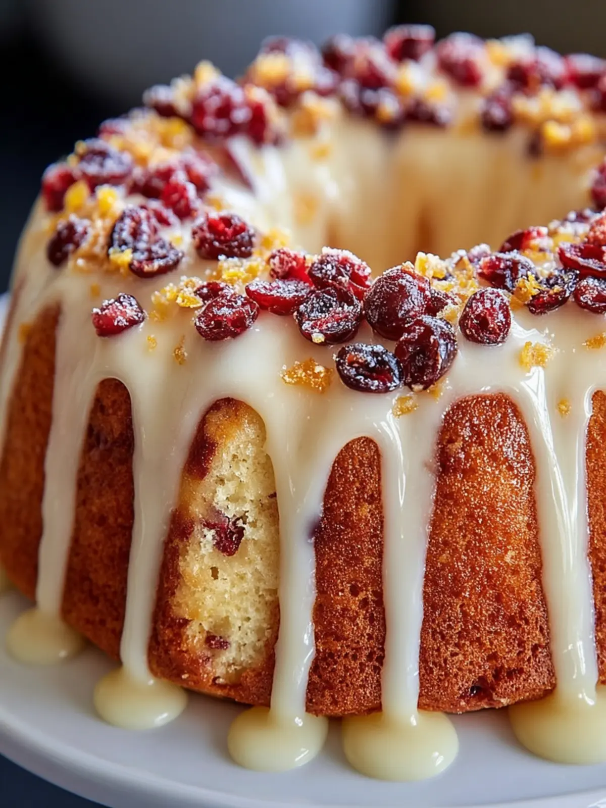 - Decorate: Drizzle the glaze over the cooled cake. Sprinkle dried cranberries and additional orange zest on top for decoration.