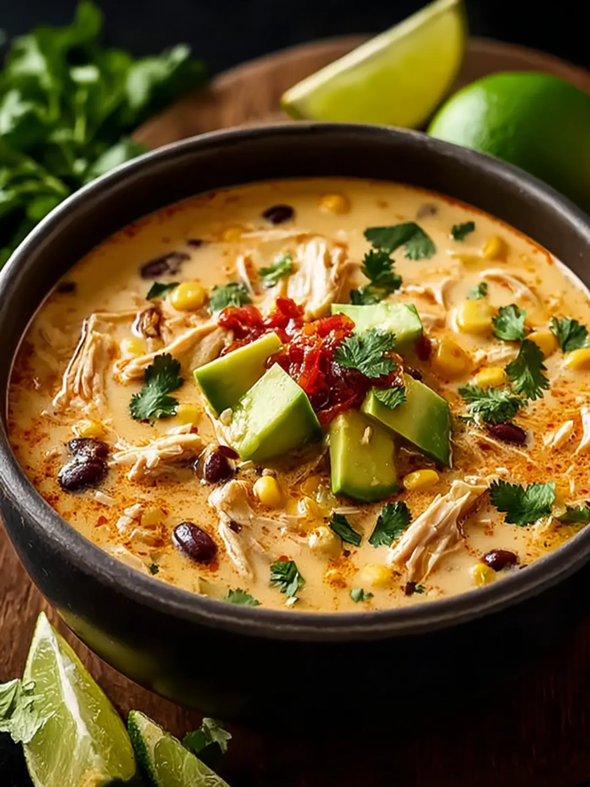 A delicious and creamy chicken taco soup that is perfect for any occasion.