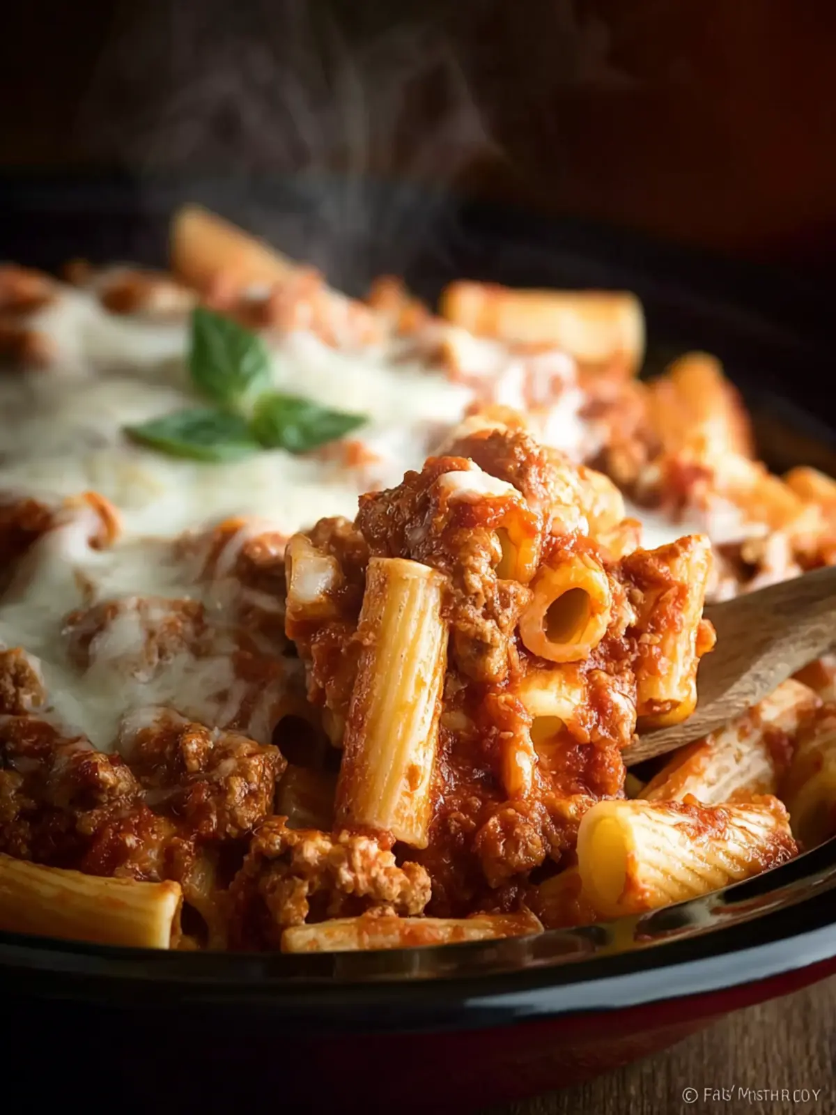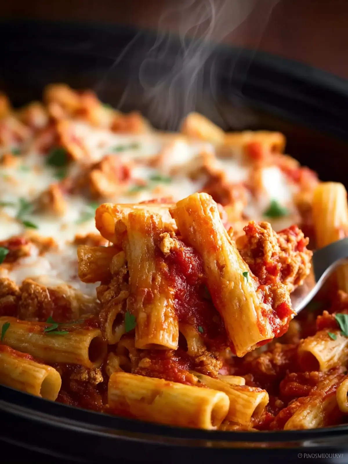Opt for ziti or penne pasta for the best texture—they hold onto the sauce beautifully. Undercook the pasta by about 2-3 minutes less than what the package recommends. This ensures it doesn’t turn mushy while slow cooking.