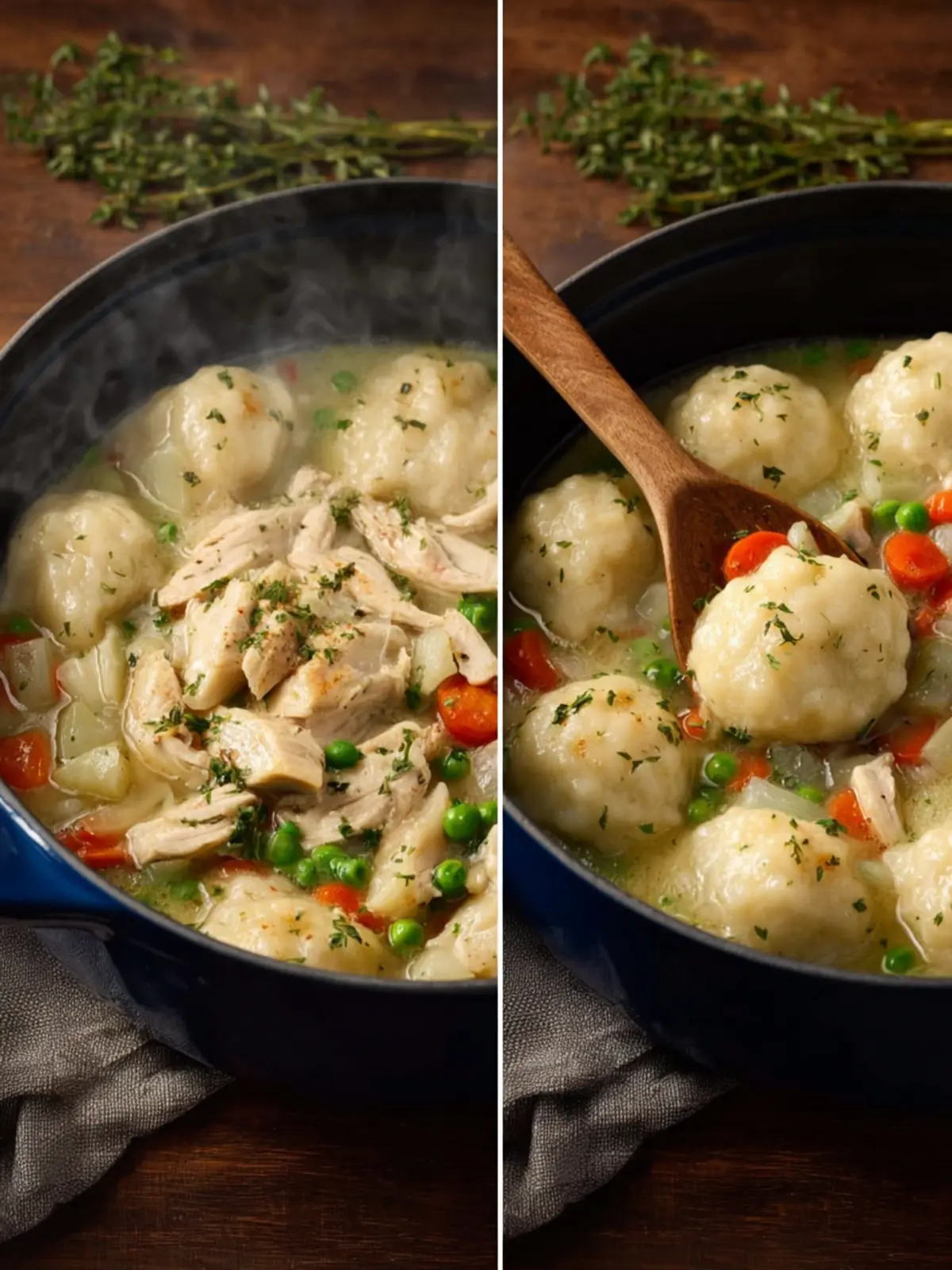 - Turkey or Beef: Swap out chicken for turkey or beef for a different flavor profile. Both work wonderfully with the rich broth and fluffy dumplings.