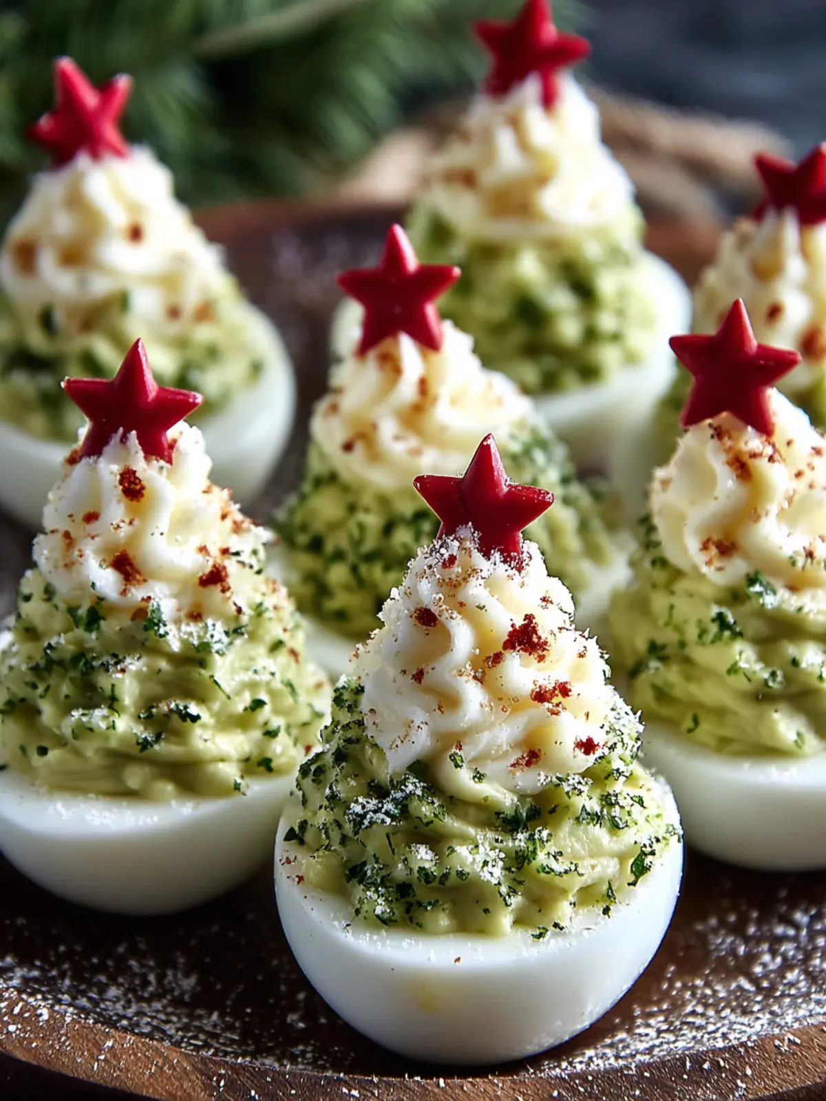 A creative and festive twist on classic deviled eggs, perfect for holiday gatherings!