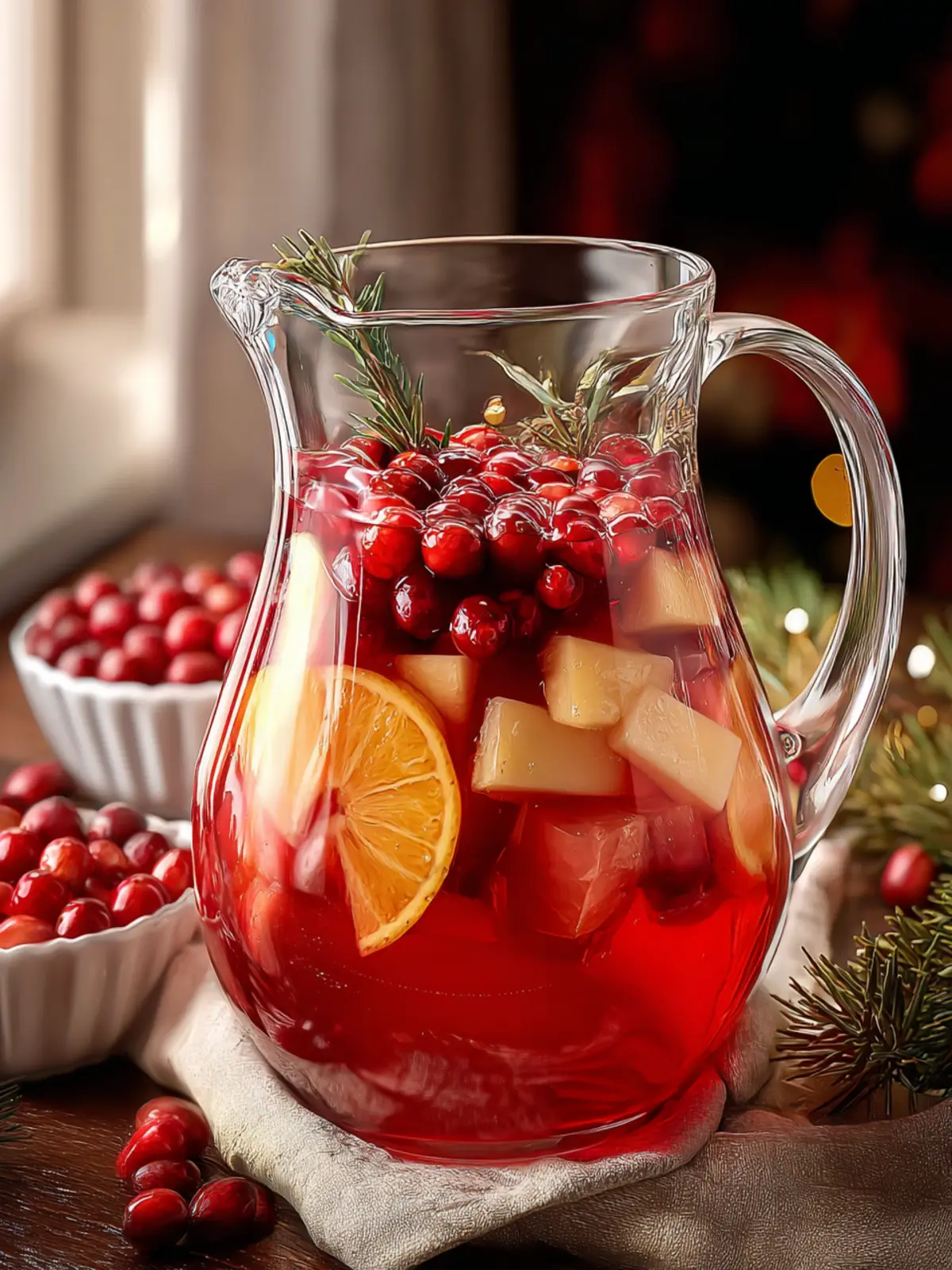 - Visual Appeal: The vibrant red of cranberries paired with floating citrus slices makes for an eye-catching centerpiece.