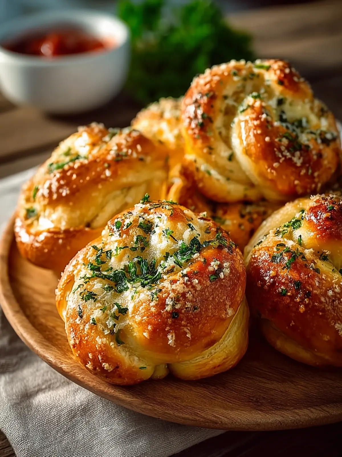Gourmet Touch: For a more sophisticated serving, try topping your garlic knots with a sprinkle of grated Parmesan and fresh herbs—like basil or parsley—right before serving. This not only looks visually appealing but also adds an extra burst of flavor.