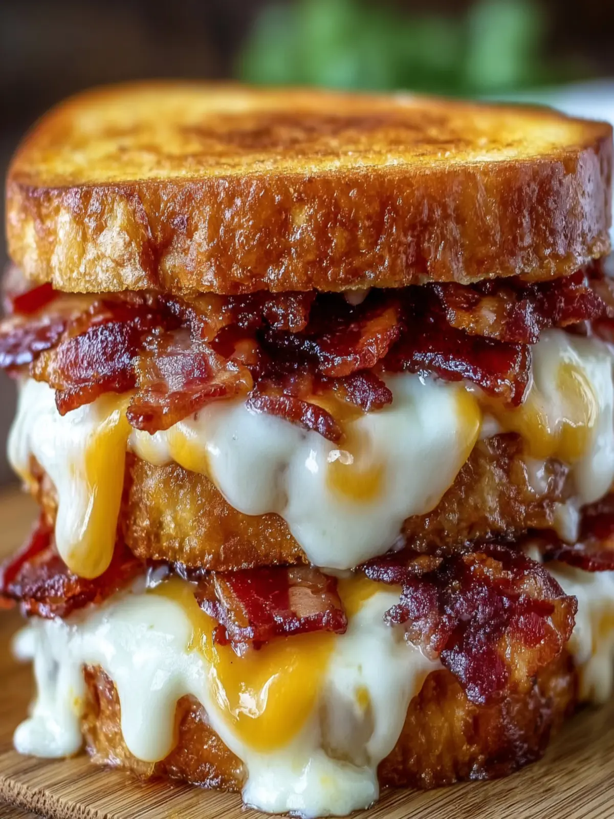 This delicious gourmet bacon grilled cheese sandwich is a perfect blend of crispy bacon and melted cheese, offering an indulgent treat for any meal.