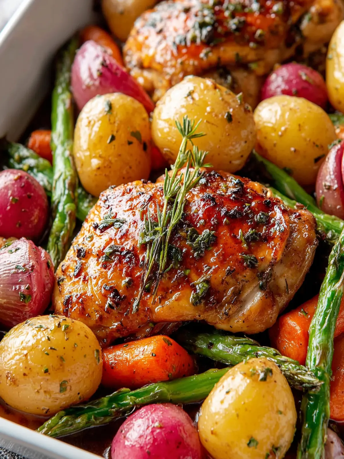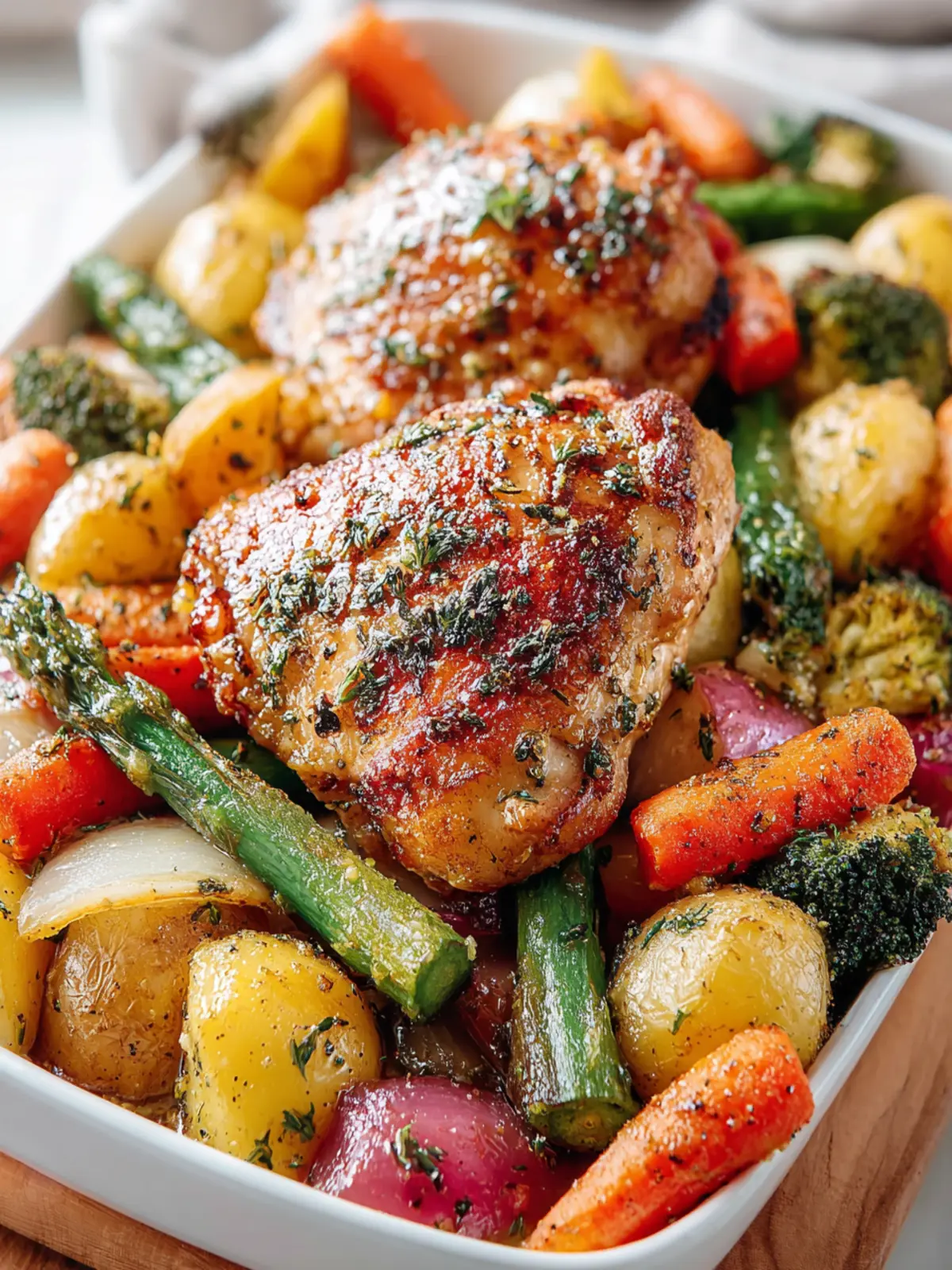 Chicken: The star of our dish, chicken thighs keep the party going with their juiciness and tenderness. As they roast, they soak up the sweet and tangy flavors, delivering a satisfying bite every time.