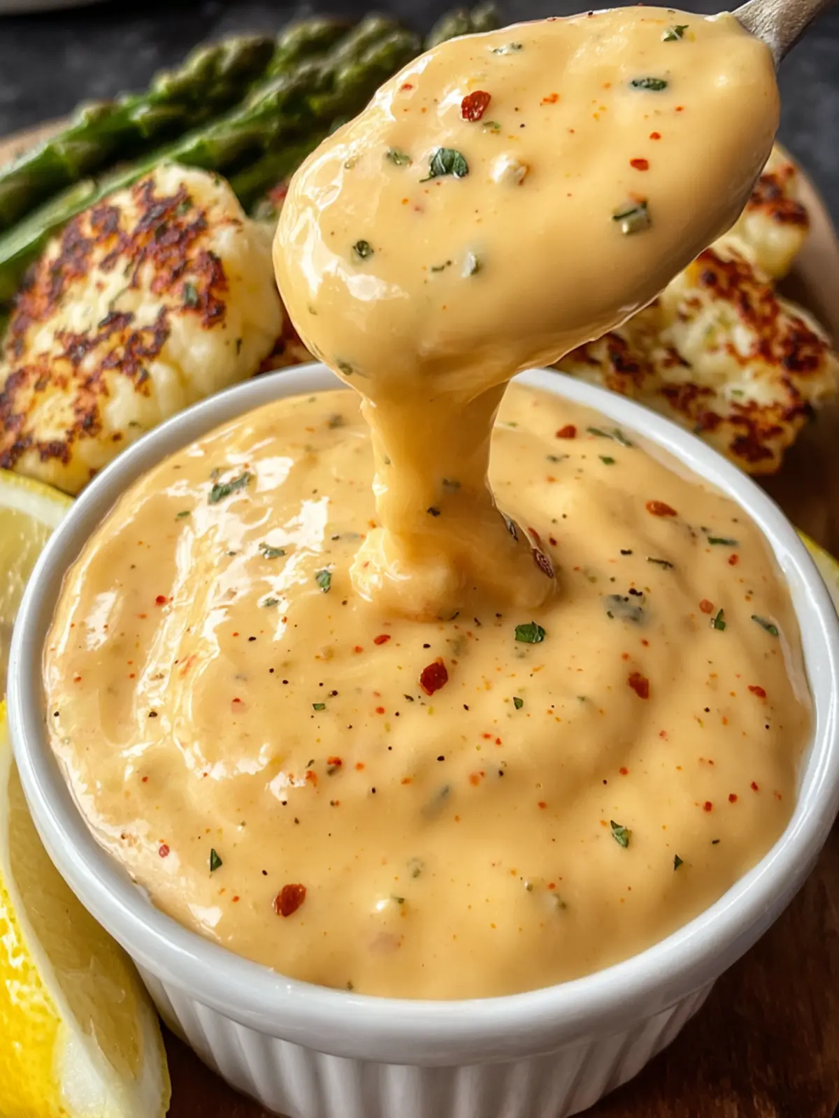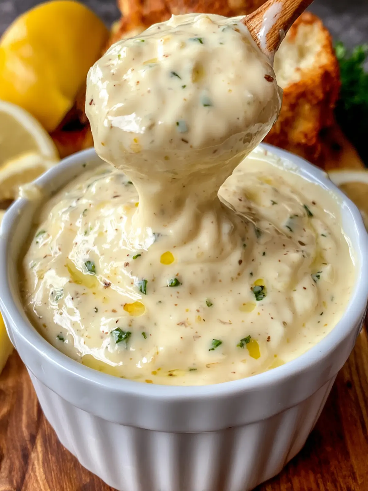 A delicious creamy garlic sauce that pairs perfectly with various dishes.