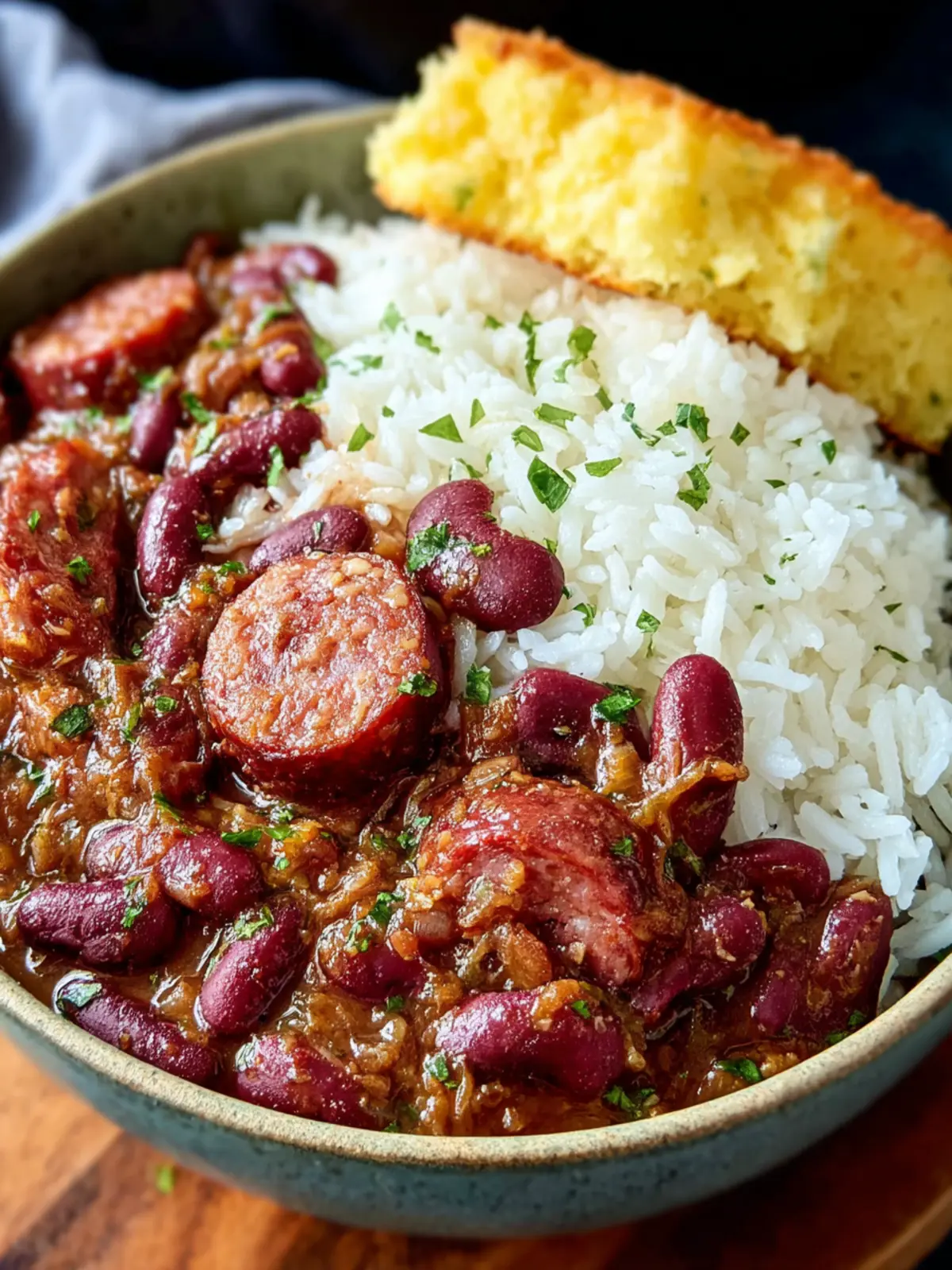In wrapping up this journey through the flavors of red beans and rice, it’s clear that this dish is more than just a meal—it’s an experience that warms the heart and soul. The blend of creamy red beans and smoky sausage, simmered to perfection, creates a harmony of flavors that’s both comforting and satisfying. Whether you’re preparing this for a casual weeknight dinner or a gathering with friends, its simplicity and robust taste make it a go-to recipe. Embrace the culinary tradition and share this delightful dish with those you love, creating memories with each bite.