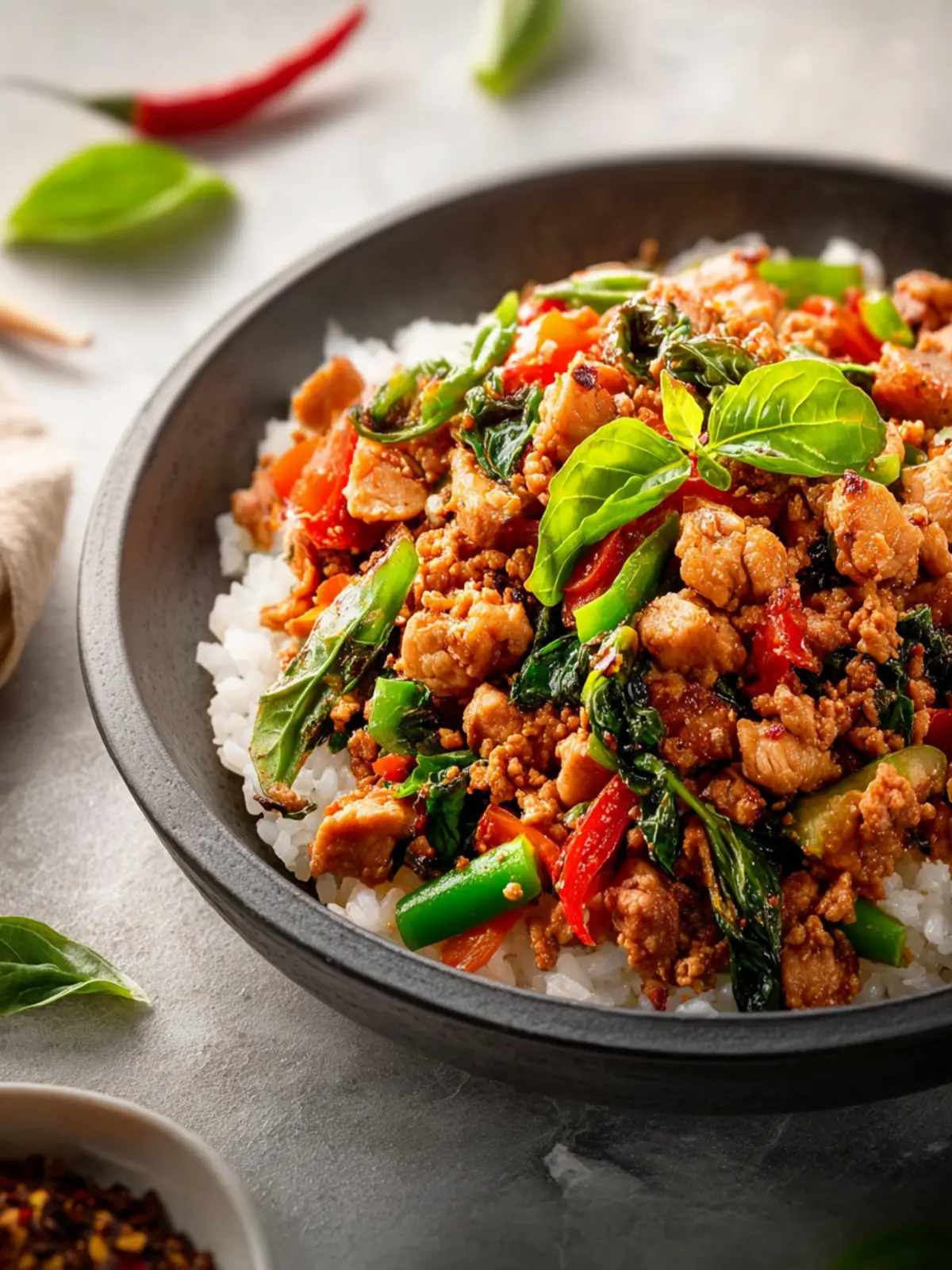 A flavorful and quick Thai basil chicken stir-fry perfect for a weeknight dinner.